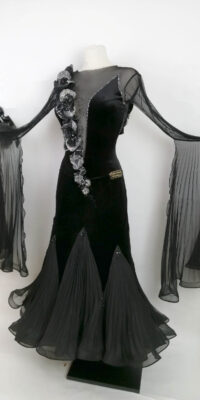 SK-KBE5 ロシア製の立体的なバラのオーナメントのデザインが大変美しいベルベット&プリーツの長袖のスタンダードドレス(9号)
