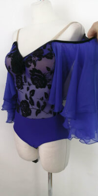 TK-DBF2 スヴェトラーナ・パブリッシュ制作!超絶かわいいクリスアンクローバーのベルベットのバラ柄のメッシュを使用したオフショルダー、フリルの袖が美しい夏向けのオーシャンブルーのレオタード(9号)