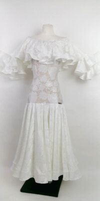 TK-LBE16 オフショルダーのフリルと袖のフリル、総レースが超美しいスヴェトラーナ・パブリッシュ制作の白の一点物の石なしのスタンダードドレス(9号)