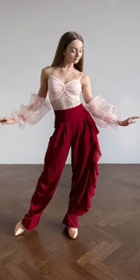 ABF2 管理人超絶お勧め!!ロシアの「プラクシス」制作のレースとサイドのフリルがゴージャスで最高のラインの美しいバーガンディ色のワイドパンツ(裾絞りタイプとストレートとの2Way、9号または小さ目11号)