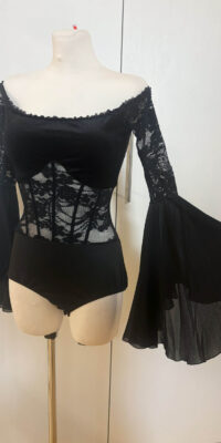 TK-ABF3管理人も所有!ロシアの「プラクシス」のレース&ベルベットが超美しい黒のオフショルダーのレオタード(9号または11号)