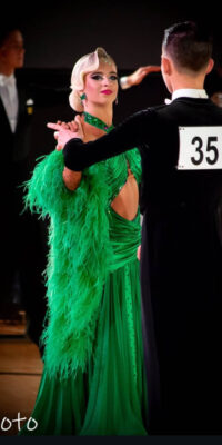 SK-LBE5「アローナ・ミャリック」制作!スタイリッシュで最高にかっこいいエメラルドグリーンのオーストリッチづかいのスタンダードドレス(7ー小さ目9号)