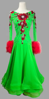 SK-LBE8 「EMクチュール」制作!!アップルグリーンと赤のコントラストが美しい、超スタイルよく見える長袖のスタンダードドレス(9号)