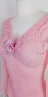 TK-LBE10 ウクライナの「スヴェトラーナ・パブリッシュ」制作のストレッチレースが超美しく上品な一点物のシュガーピンクのレオタード(9号)