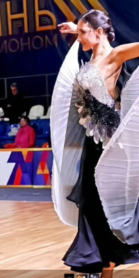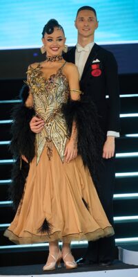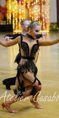 SK-JBE9 ロシアのGAMEデザインが、プロフェッショナル欧州選手権チャンピオン、アナスタシア・メシュコワ選手のため制作したシルバーゴールドの黒を組み合わせた超豪華なスタンダードドレス(9号)