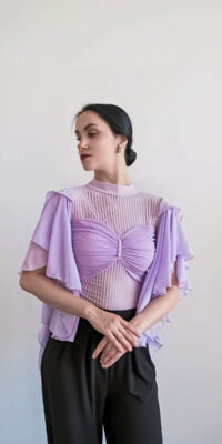 TK-JBE16ロシアの超素晴らしいブランド、「プラクシス」制作のフレアの袖が美しいライラック色のレオタード(11号)