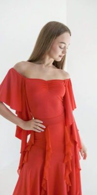 TK-JBE17 管理人超絶お勧め!ロシア「プラクシス」の超スタイルよく見えるオフショルダーの赤のレオタード(9号)