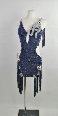LK-IBE6 ウクライナのチャンピオン着用の石びっしりの超豪華でかっこいいネイビー&シルバーのスポンサードレス(9号)