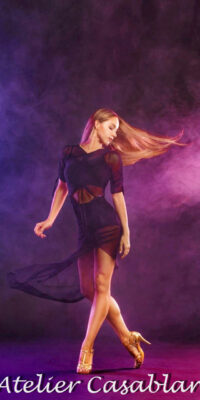 TK-JBE1ウクライナのチャンピオン所有のウクライナ製のスタイリッシュでかっこいいメッシュ素材のアシンメトリーなルンバスタイルのワンピース(7-9号)