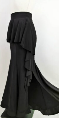 TK-KBE5 管理人もオーダー!超!スタイルよく見えるアシンメトリーなフリルが超美しいマーメードラインの黒のスカート「Andreea」(7号、9号、11号、オーダーOK)
