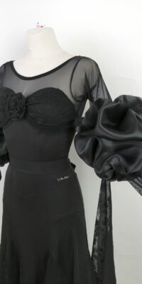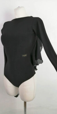 TK-KBE7ルーマニアの「Evoly Design」制作!バックスタイルのフリルのデザインが大変美しい黒の長袖のレオタード(7,9、11号、フルオーダーOK)