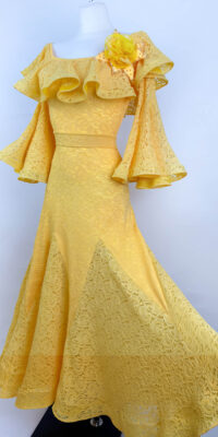 TK-KBE9 「スヴェトラーナ・パブリッシュ」制作!鮮やかなイエローの総レースが上品で豪華な石なしのスタンダードドレス(9号)