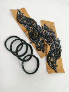 石びっしりのバングルと、モチーフを使った二の腕用のバングルが2本付属しています。