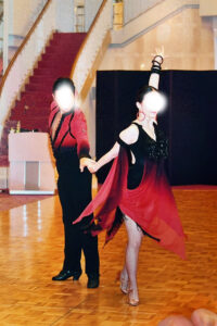 日本製の黒から赤のグラデーションが大変美しいペアドレスです。日本でダンスをされている方に掲載をご依頼いただきました。