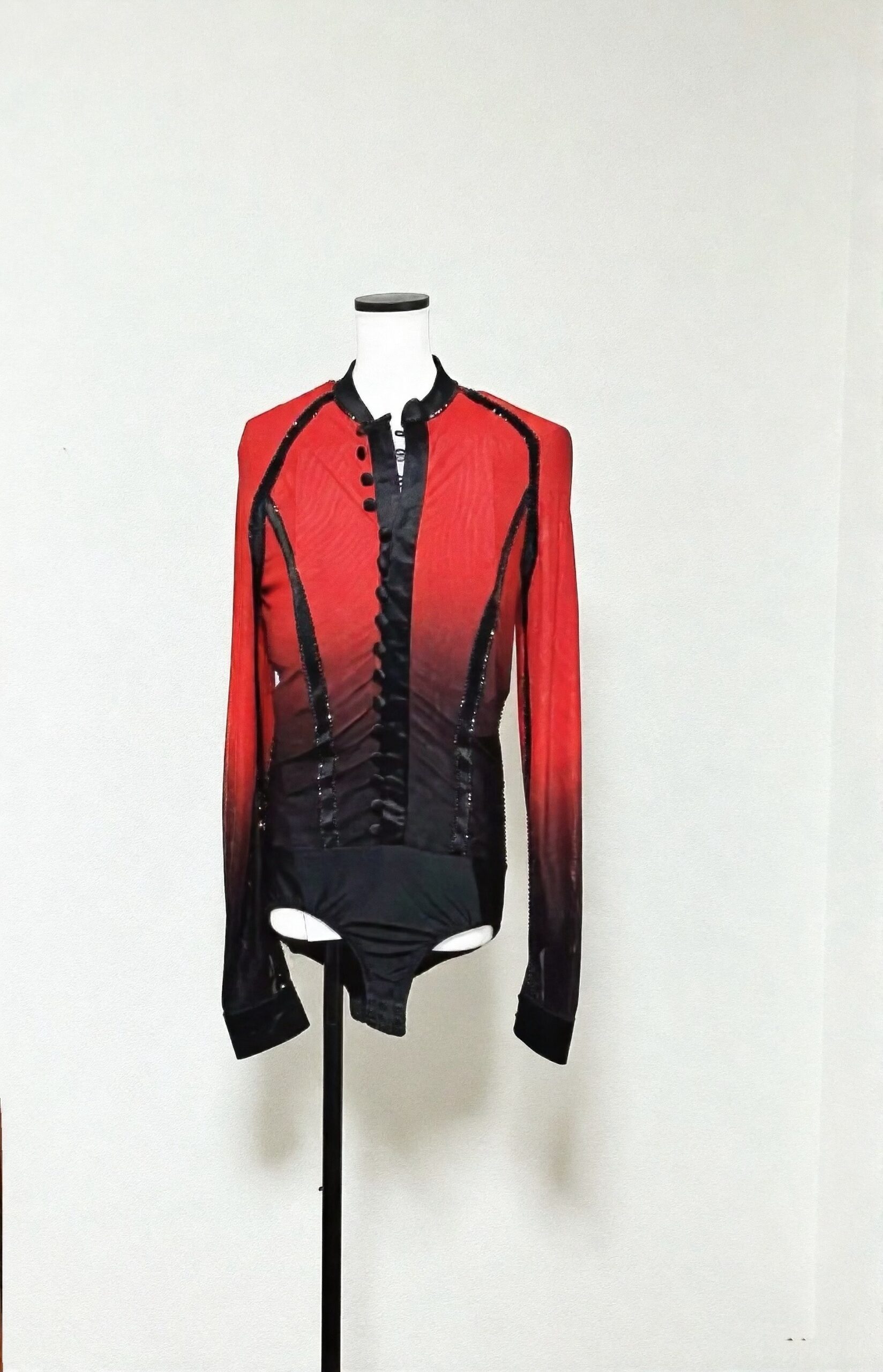 LK-KBE1 赤~黒のグラデーションが大変美しいラテンドレスとシャツのペア(9号サイズとSMサイズ身長170前後)