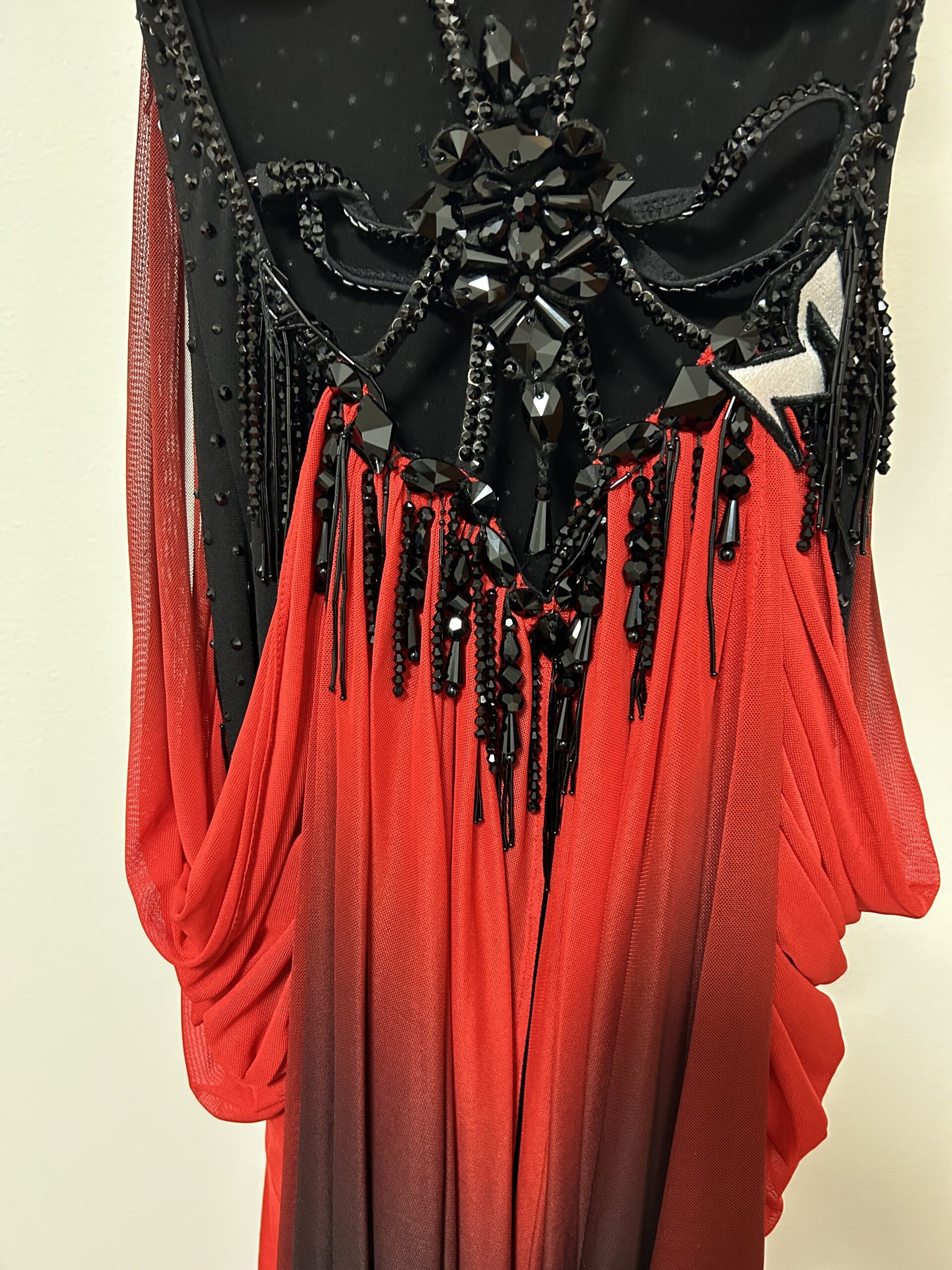 日本製の黒から赤のグラデーションが大変美しいペアドレスです。日本でダンスをされている方に掲載をご依頼いただきました。