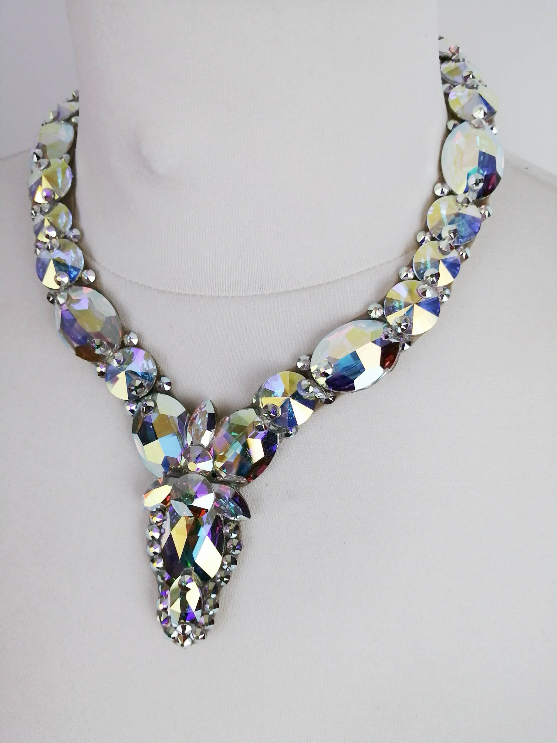S-ABF1大きなオーロラのスワロフスキの石が超豪華に輝くハンドメイドのネックレス