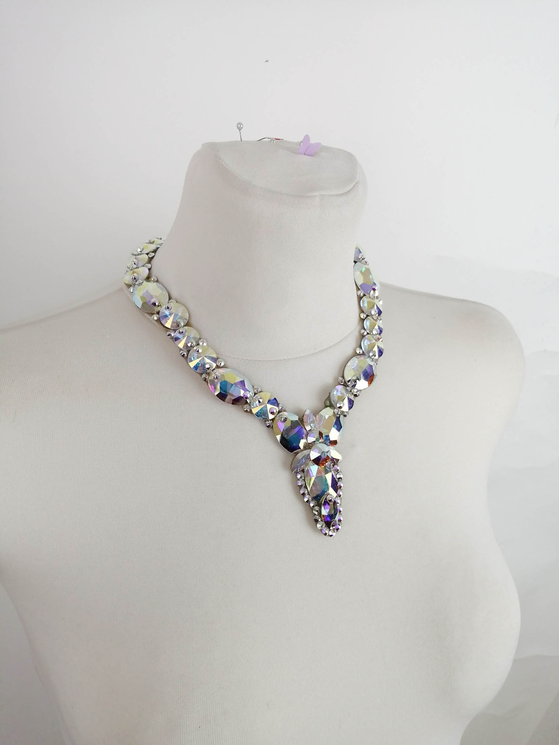 S-ABF1大きなオーロラのスワロフスキの石が超豪華に輝くハンドメイドのネックレス