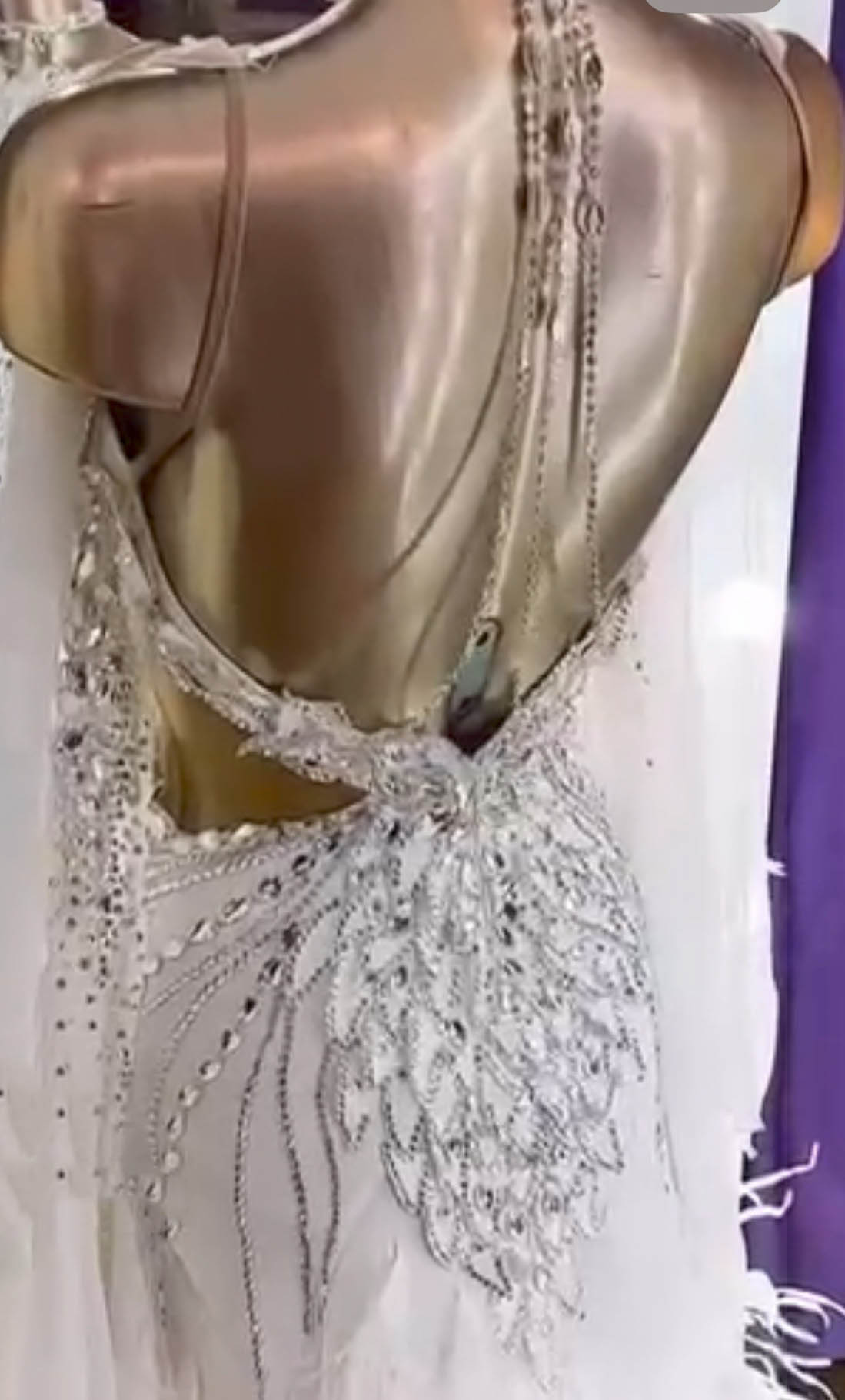 ロシアの超素晴らしいラグジュアリーブランド、「アルテラ」がラトビアの世界選手権代表選手、タイーシャ・ビチヒナ選手のために制作した、立体的なボディ部分の花びらのようなオーナメントのデザインと羽びっしりのスカートが超美しい白のスタンダードドレスです。