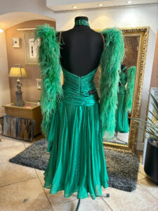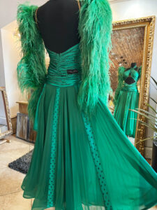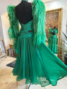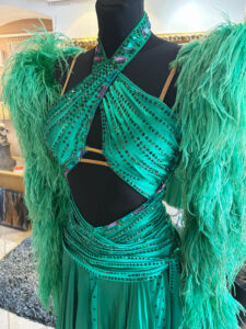 SK-LBE5「アローナ・ミャリック」制作!スタイリッシュで最高にかっこいいエメラルドグリーンのオーストリッチづかいのスタンダードドレス(7ー小さ目9号)