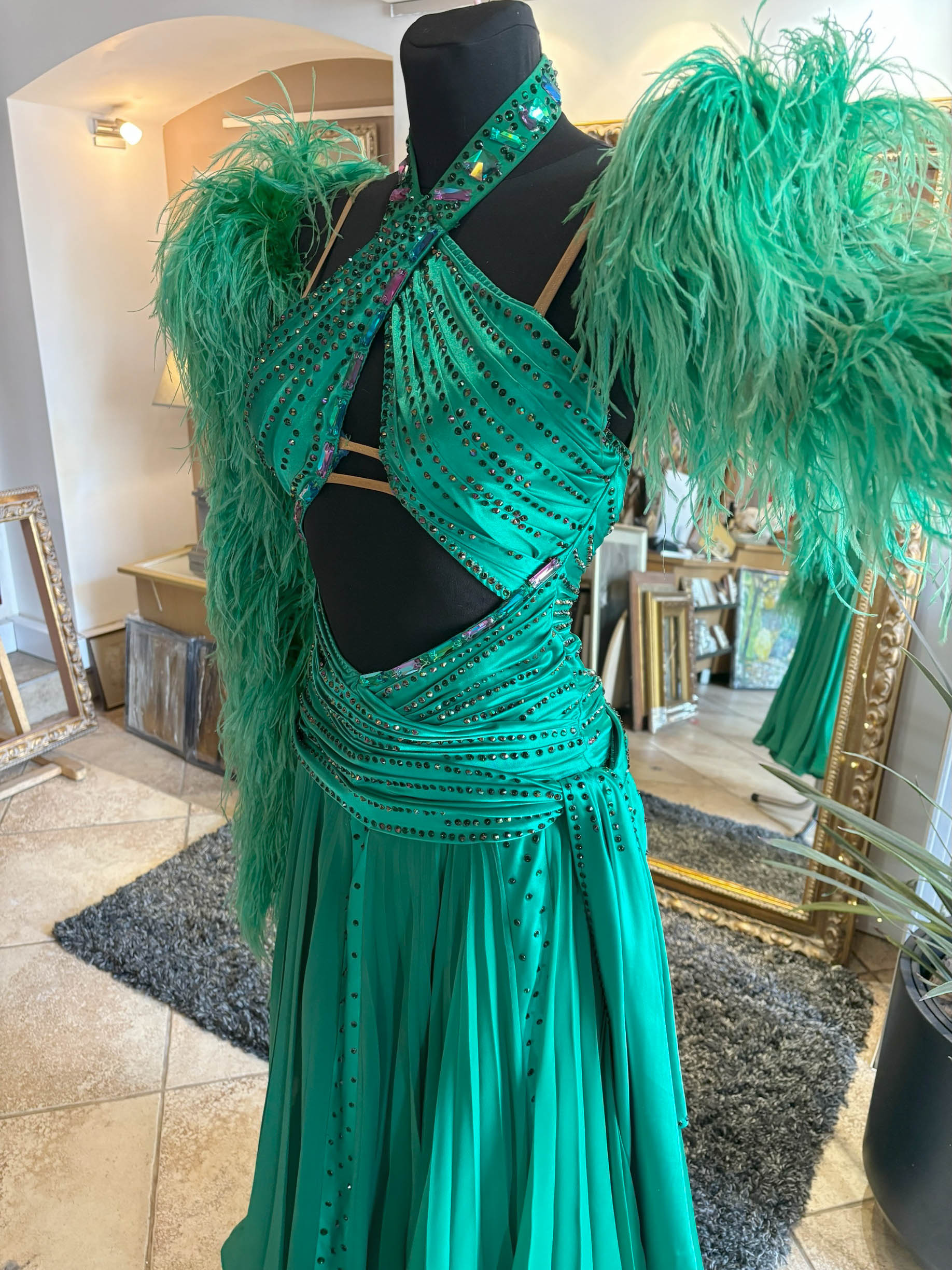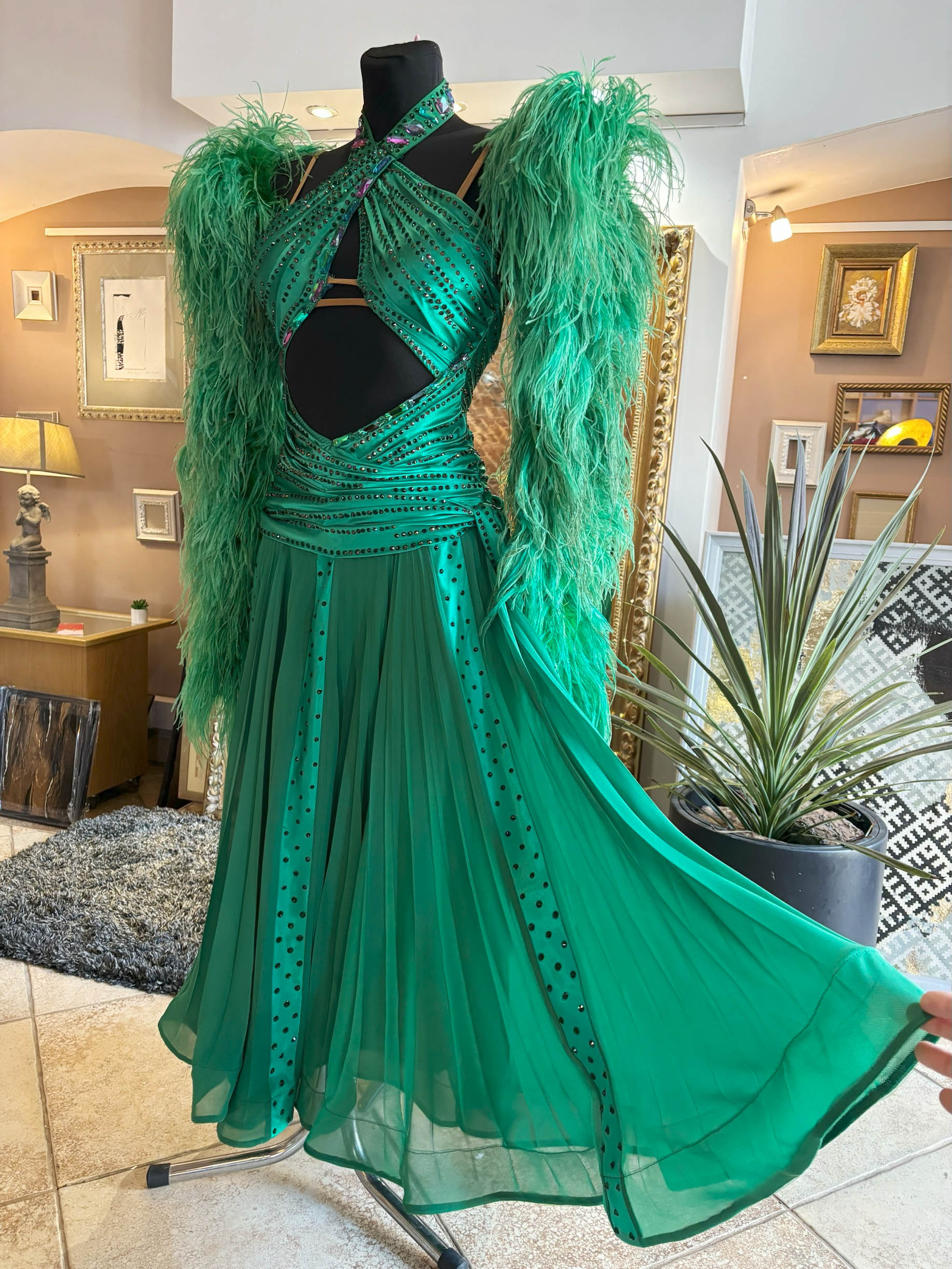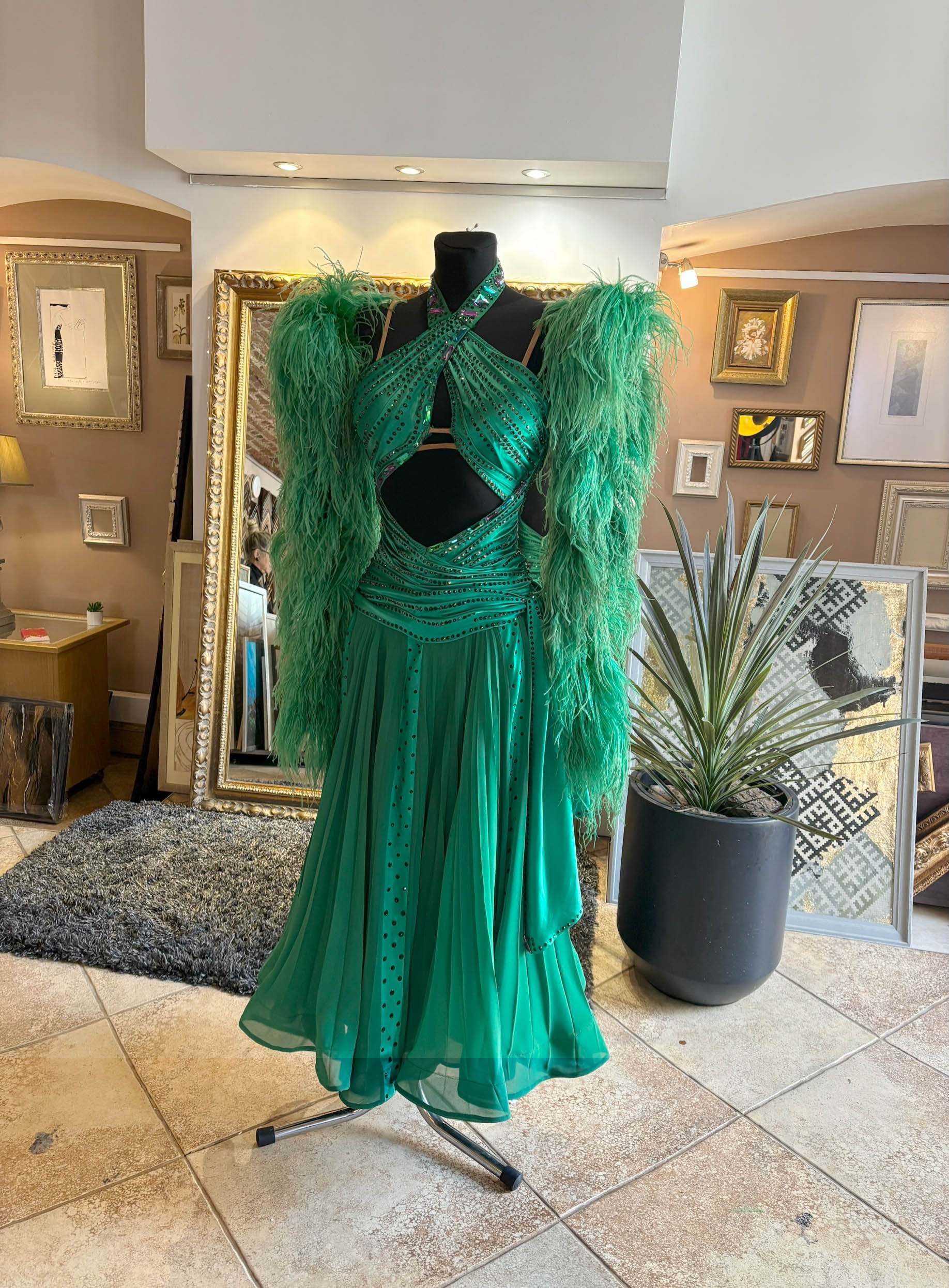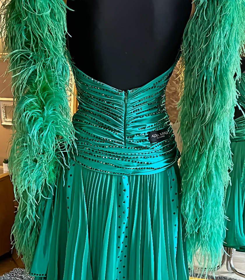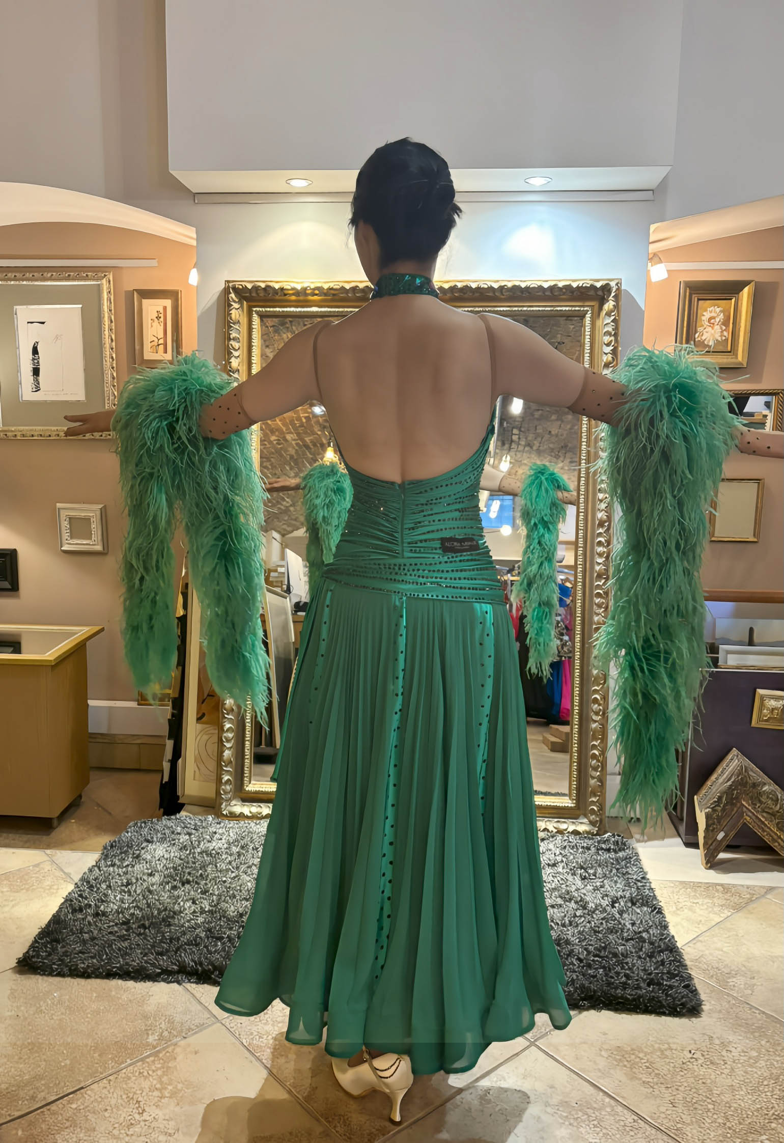 SK-LBE5「アローナ・ミャリック」制作!スタイリッシュで最高にかっこいいエメラルドグリーンのオーストリッチづかいのスタンダードドレス(7ー小さ目9号)