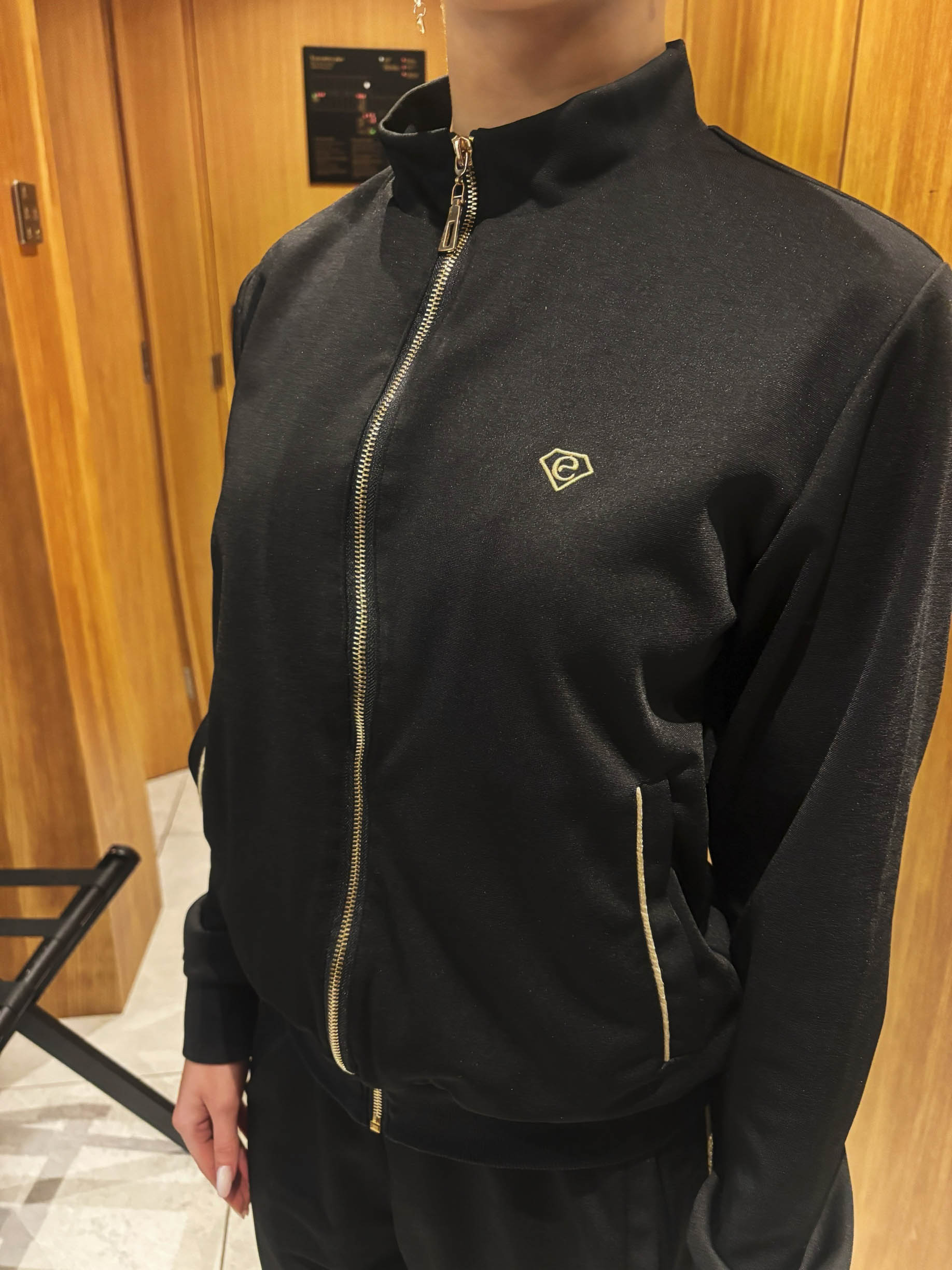 管理人超絶お勧めのルーマニアのスタイリッシュで超素晴らしいダンスウェアブランド、「Evoly Design」の競技会用(もしくはデモ前、本番前などの移動用)の超かっこいい競技用に特化された黒&ゴールドのトラックスーツです。