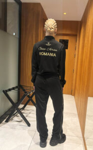 モデルをしているルーマニアのトップ選手、オアナ・アヴラム選手は上にフルネーム、下に国名を入れています。筆記体と普通の書体を混ぜることも可能ですが、上に名前、下に国名を入れるのがお勧めです。