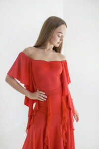 ロシアの超素晴らしいラグジュアリーダンスウェアブランドで、管理人自身も多くのウェアをオーダー&着用している超お勧めの「プラクシス」の赤のオフショルダーのレオタードです。