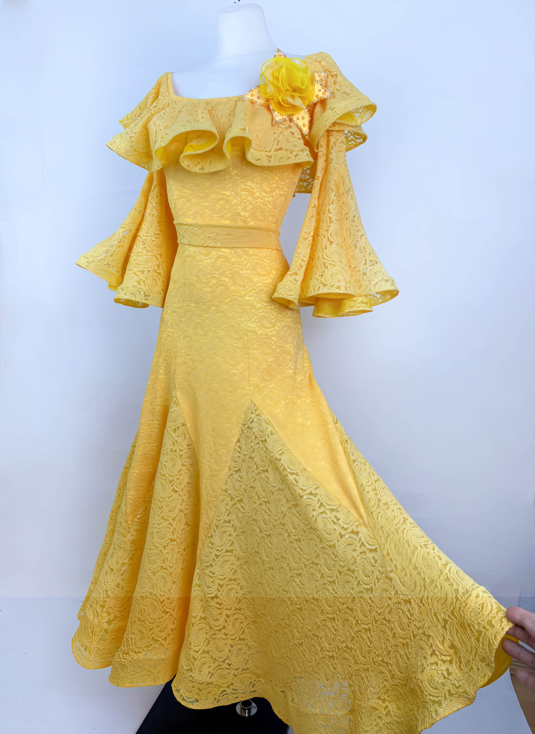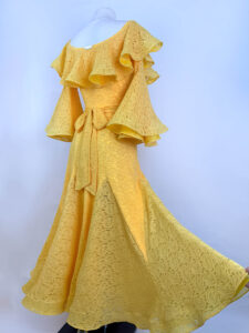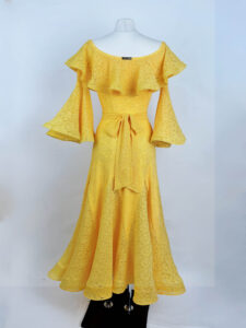 ウクライナのラグジュアリーダンスドレスブランドで、管理人が最高に信頼しており、管理人自身も大ファンの「スヴェトラーナ・パブリッシュ」制作の鮮やかで暖かみのあるイエローのレースが超エレガントで美しいスタンダード用ワンピースです。
