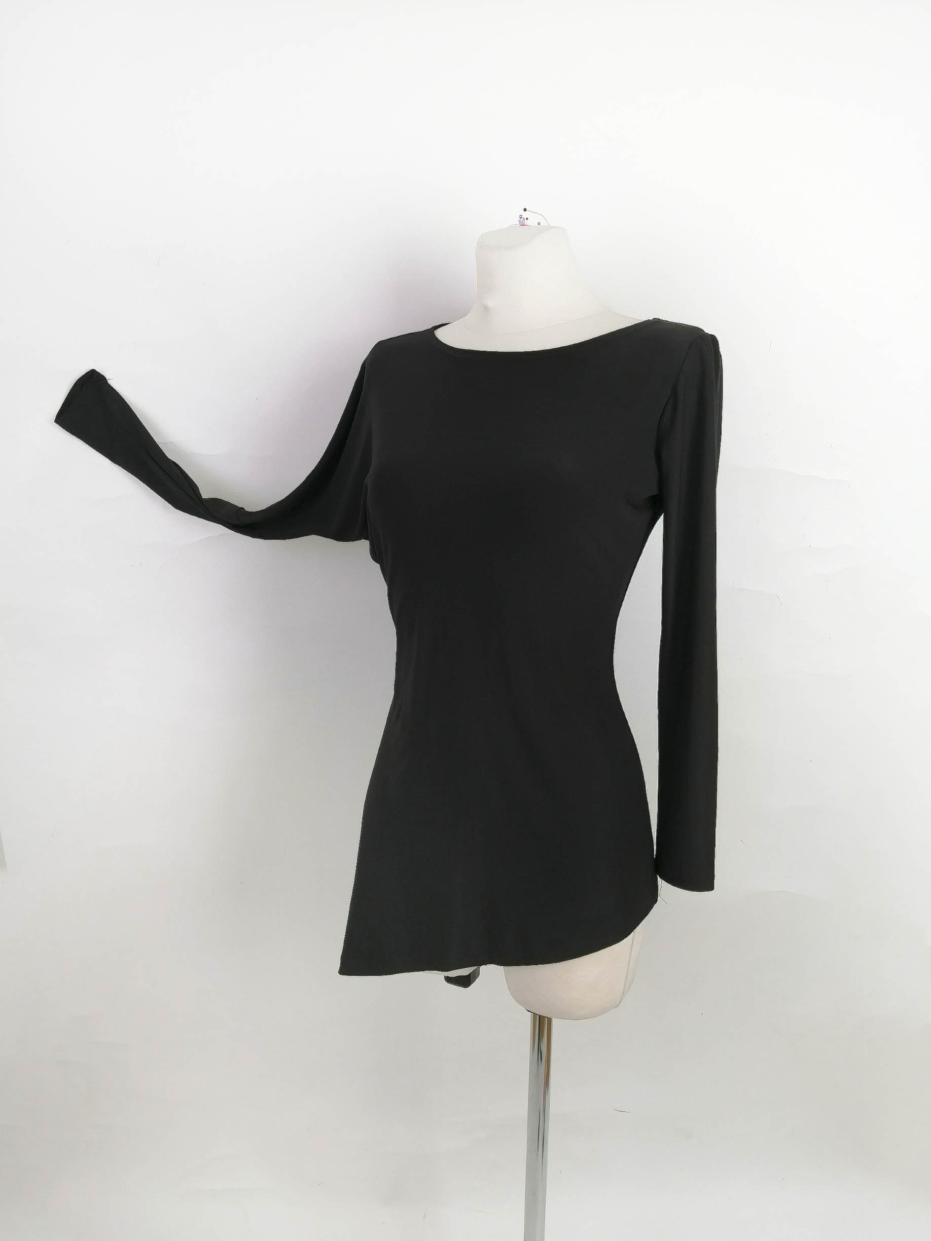 ウクライナのチャンピオンのタイトルを持ち2025年のロンドンインターにてセミファイナルに入賞したトップラテン選手、ヴィクトリア・マイスター選手所有のウクライナ製の黒の長袖のロングトップです。