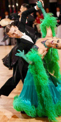 SK-ABF4ポーランドのトップ選手のためにウクライナの人気ブランド「ステッシュアトリエ」が制作した、オーストリッチの羽が超豪華な超スタイルよく見えるエメラルドグリーンのスタンダードドレス(9号、小柄な方向け)