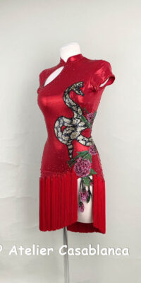 LK-ABE4小柄で細身な方向けのロシア製のフレームレッド&黒のラテンドレス(7号)