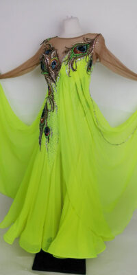 SK-BBF5超スタイルよく見せる大きなフロートが大変印象的なロシア製のイエローの長袖のスタンダードドレス(大き目9号―11号)