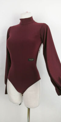 TK-BBF1 管理人超お勧め!!!ルーマニアのEvoly Design制作のスタイリッシュなバックスタイルが美しいハイネック長袖のバーガンディ色のレオタード(各種サイズ、ほかの色でも制作可能)