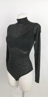 TK-BBF11管理人超お勧め!ルーマニアの「Evoly Design」制作のエレガントなリーフ柄のメッシュが美しいハイネック長袖のスタイリッシュなレオタード(9号(その他のサイズも受注生産OK))
