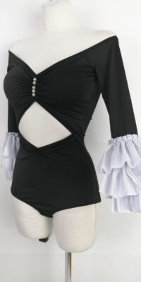TK-BBF6エストニアの「ノーブレス」制作!ブラックプールセミファイナリスト所有のオフショルダー、パールの飾り、白のティアードの袖がエレガントで美しいレオタード(9号)