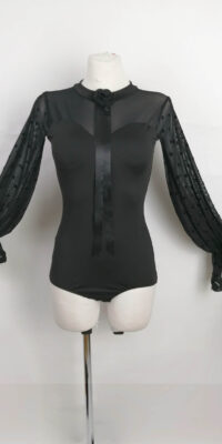 TK-CBF14 ブラックプールセミファイナリスト、マリア・スカッチ選手所有の「ノーブレス」のポルカドット柄&レースモチーフづかいの袖が超美しい黒の長袖のレオタード(9号)