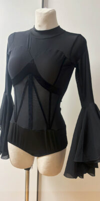 TK-CBF3 ロシアのラグジュアリーブランド、「プラクシス」のベルベットのラインとジョーゼットの袖が美しいハイネックのレオタード(9号)