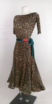 TK-CBF4 ロシアの「プリマベラ」のグリーンのベルトが超かっこいいヒョウ柄のスタンダードまたはパーティ向けのワンピース(9号)