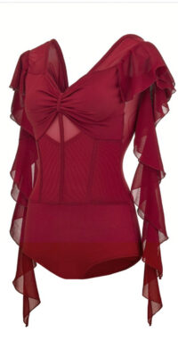 TK-CBF8ロシアのラグジュアリーブランド「プラクシス」ロングのフリルが垂れ下がるデザインが非常に美しいワインレッドのレオタード(9号)