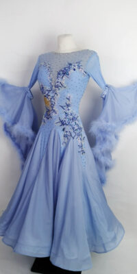 SK-DBF3ドイツの選手所有の大変スタイルよく見えるアイスブルーの長袖のスタンダードドレス(未使用新品、9号)