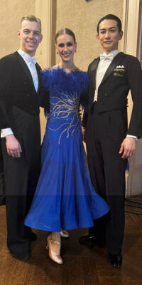 SK-ABF11ゴールドの石びっしりのボディのデザインが超美しい、イタリアRS制作のロイヤルブルー&ゴールドのオーストリッチづかいのドレス(Netflixドラマ、10Danceにて着用、9号)