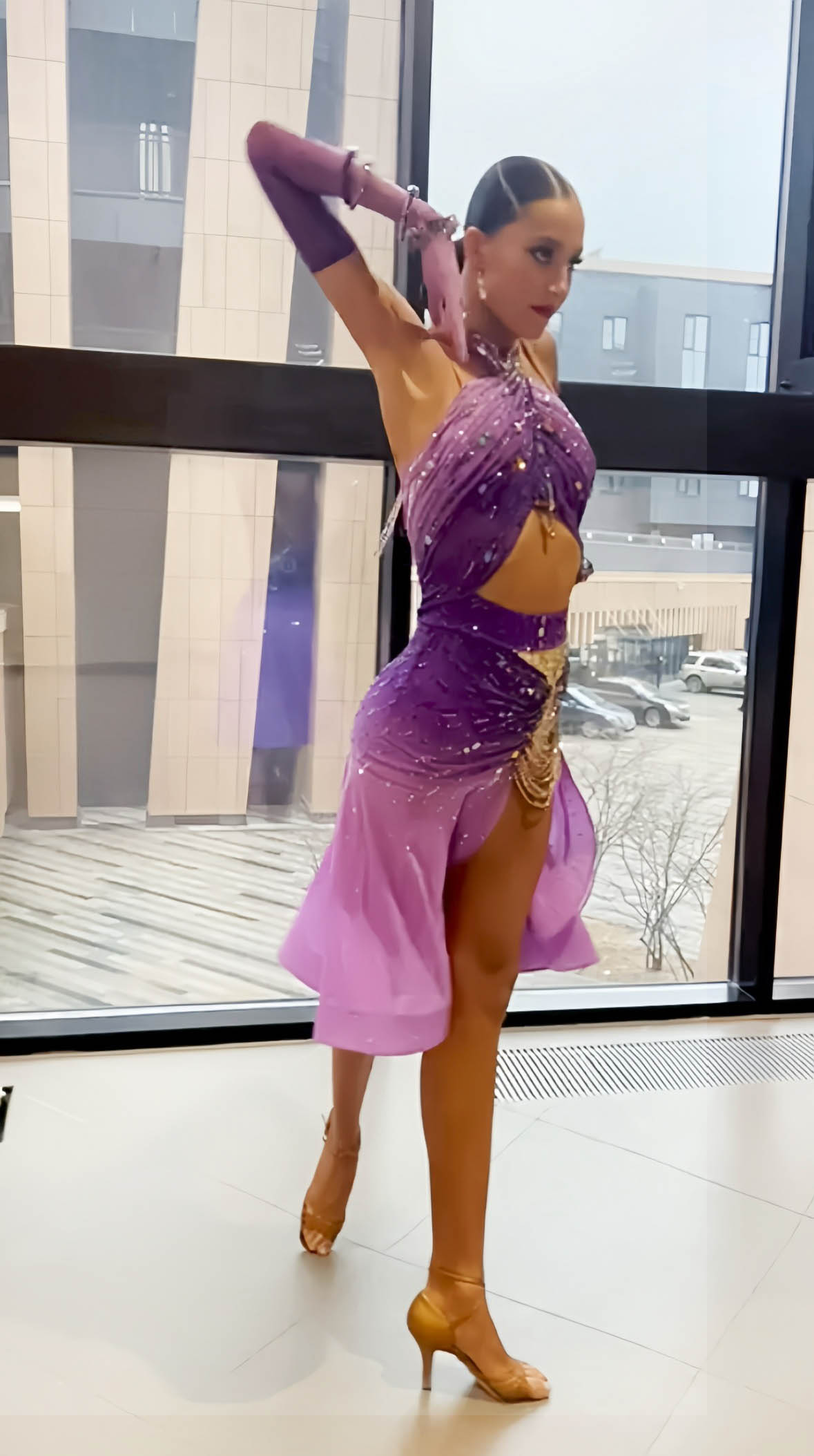 LK-JBE2 管理人超絶お勧め!ロシアのAMデザイン制作のスカートがとてもよく踊るグラデーションが超美しい紫~ライラックのラテンドレス(7号又は9号)
