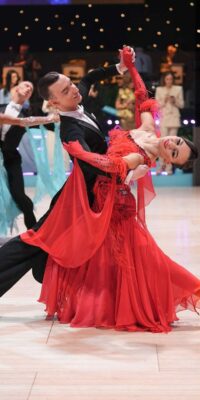 ユースブラックプールチャンピオン、UK戦チャンピオン、世界チャンピオンのタイトルを持つ超素晴らしいウクライナのスタンダードダンサー、ソフィア・アルバ選手のためにウクライナの最高のラグジュアリーダンスドレスブランドで、アトリエカサブランカでも常に大人気の「カタリーナ」が制作した石ぎっしりの超豪華で美しくめちゃくちゃスタイル良く見えるコラールピンクの長袖のスタンダードドレスです。