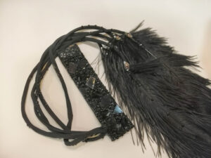 使われている石はジェットとブラックダイヤモンドで、それ以外に黒のパール、ミラーなどが使われています。
