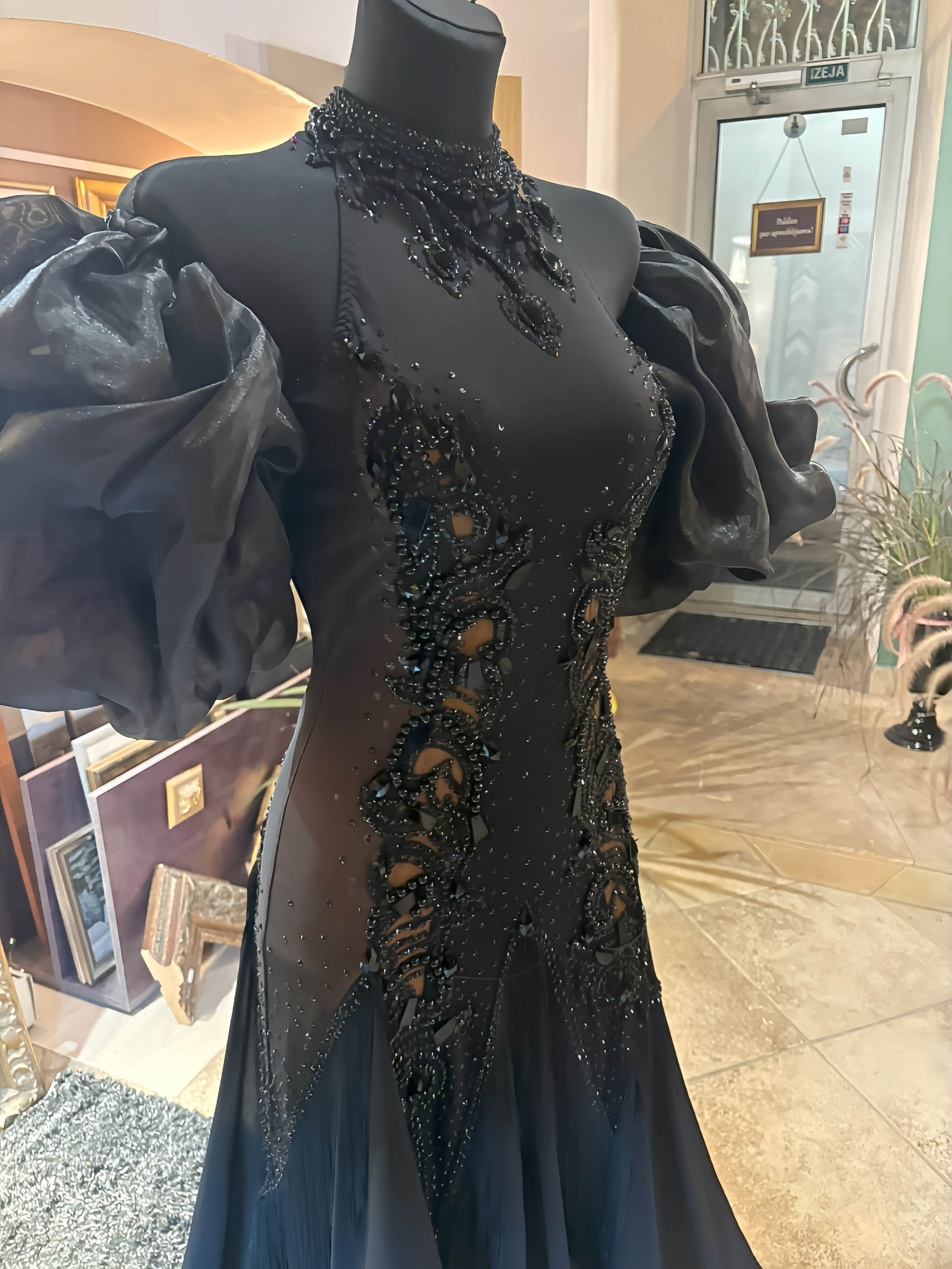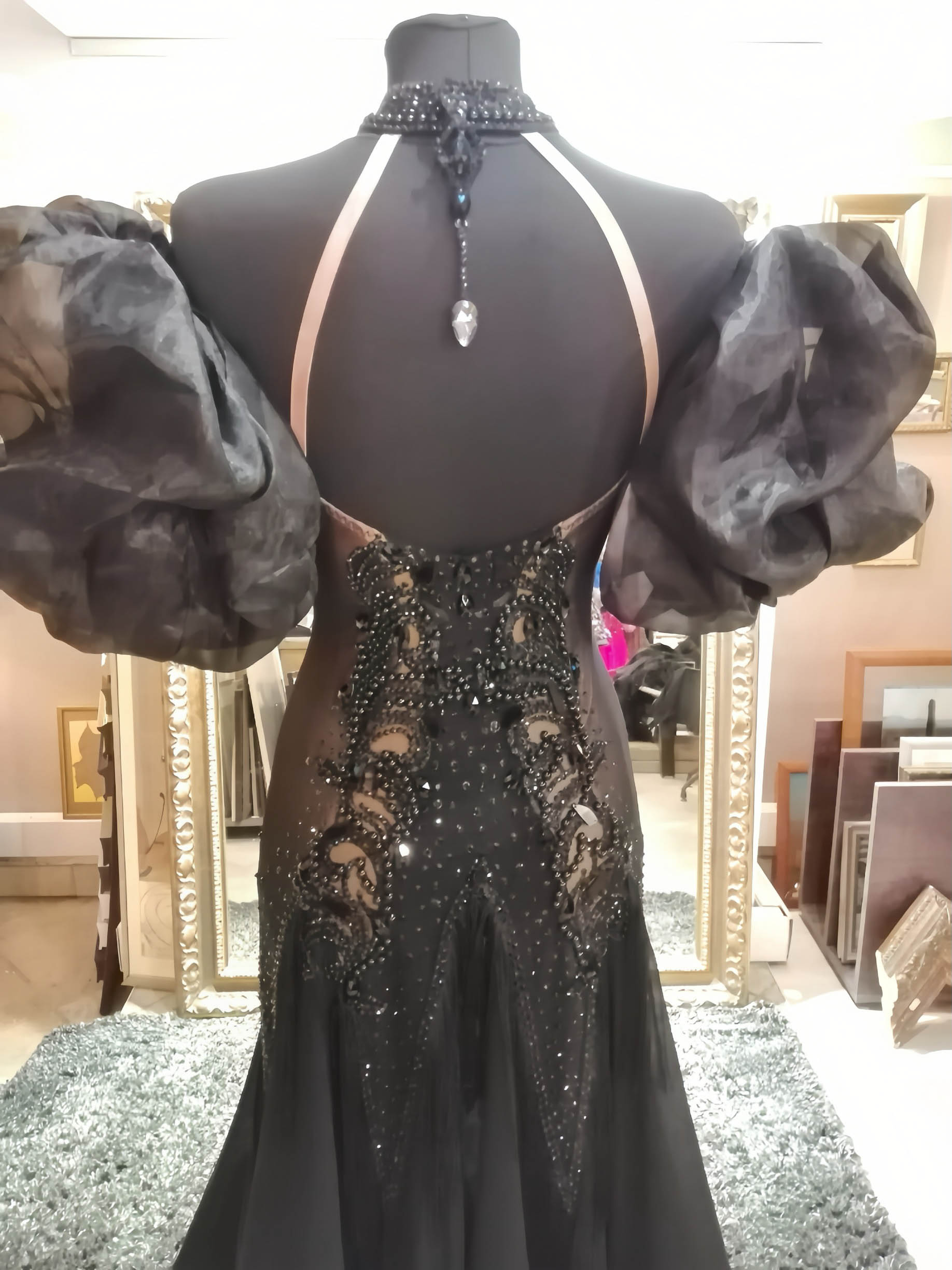 SK-LBE4ラトビアの世界選手権代表選手のために「ガリーナ・ペトルナ」が制作した、エレガントで美しい黒のホルターネックのスタンダードドレス【9号】