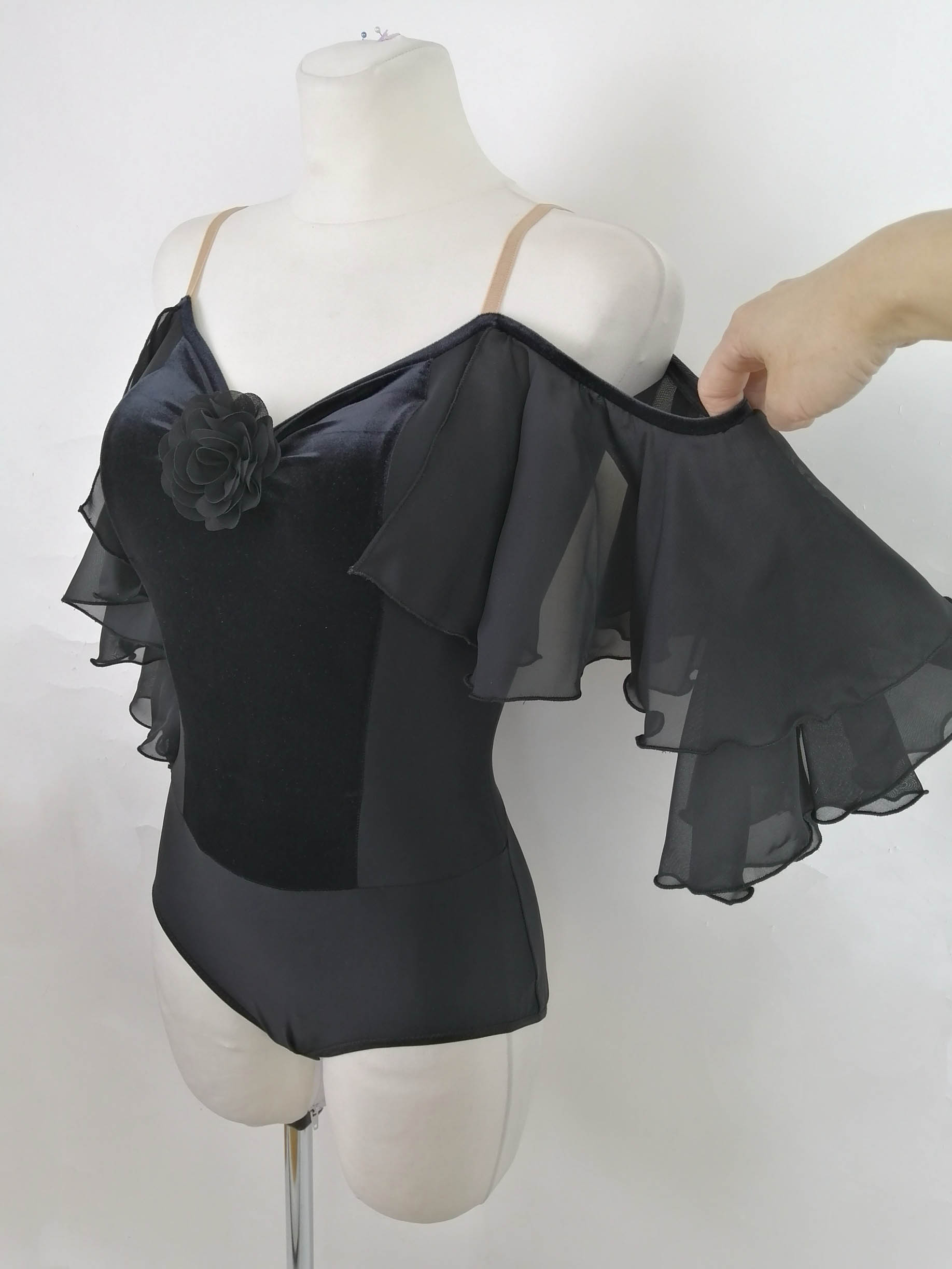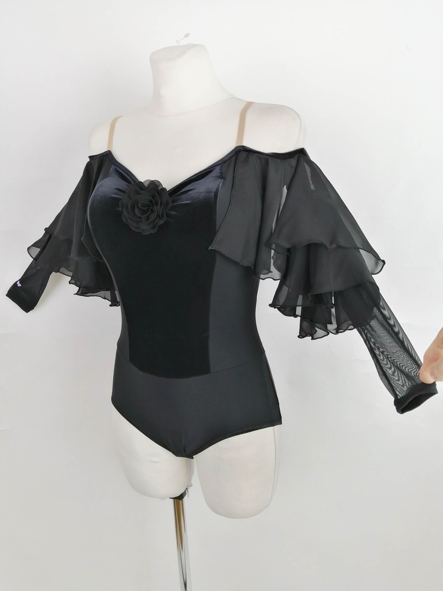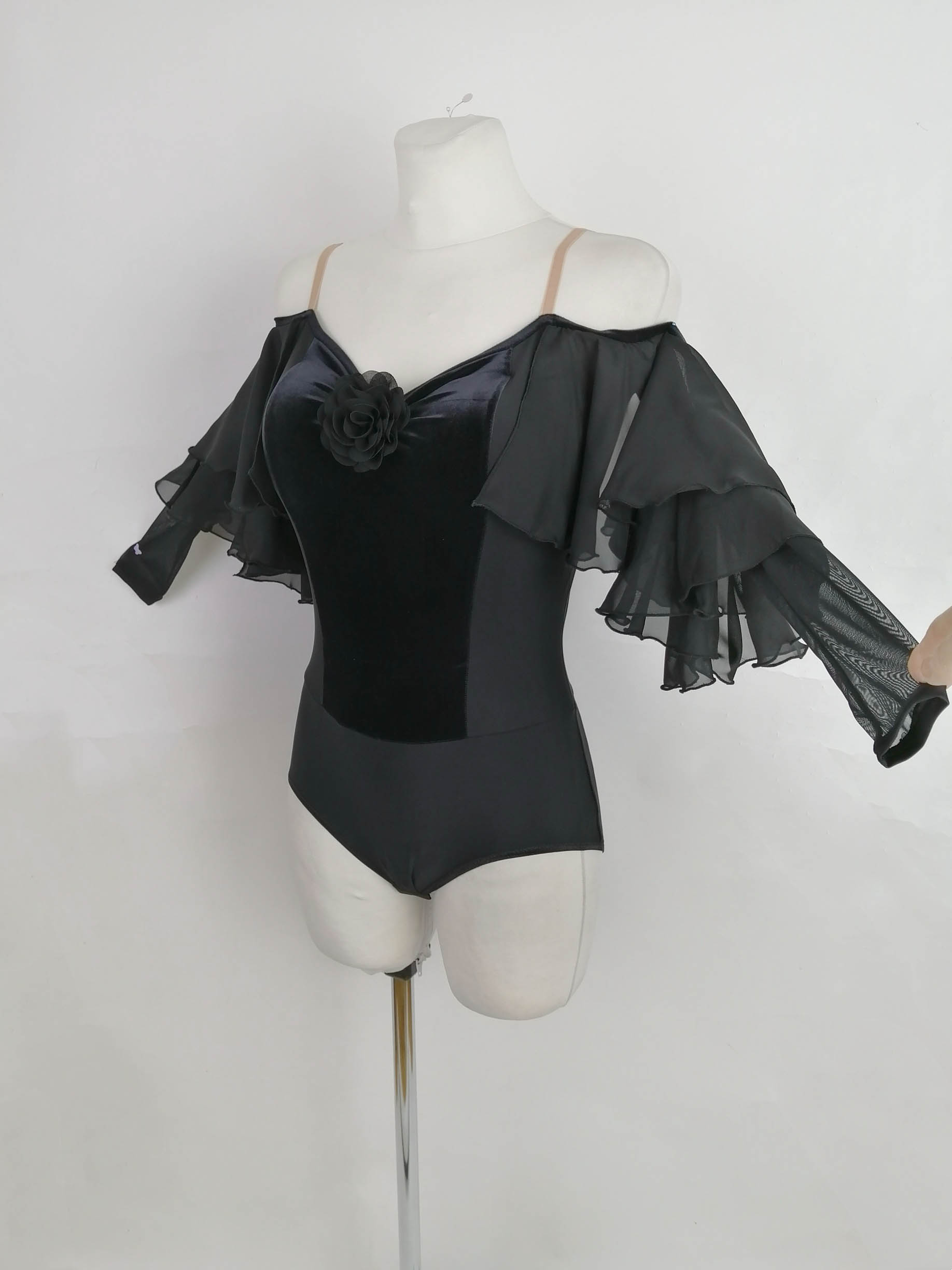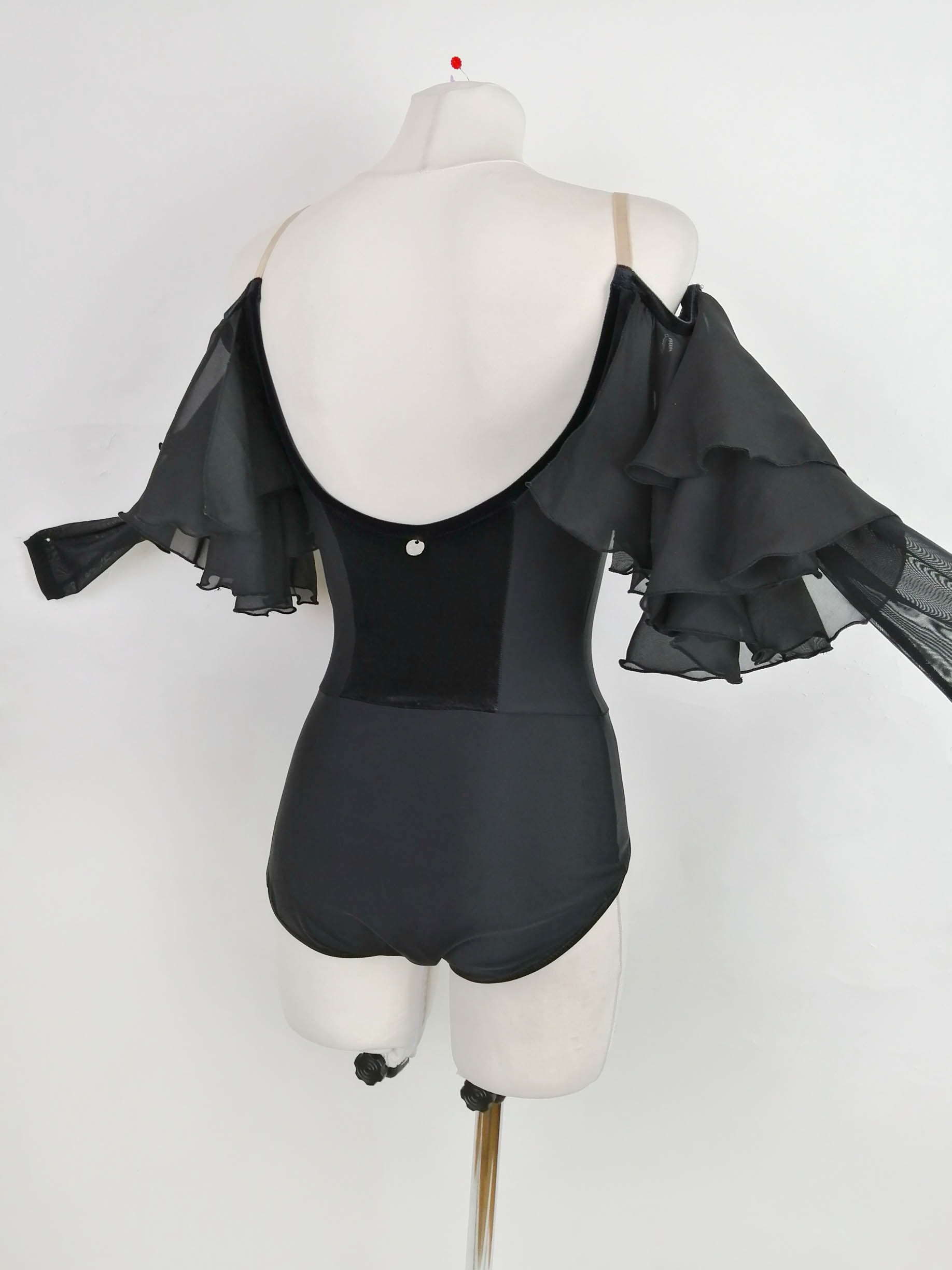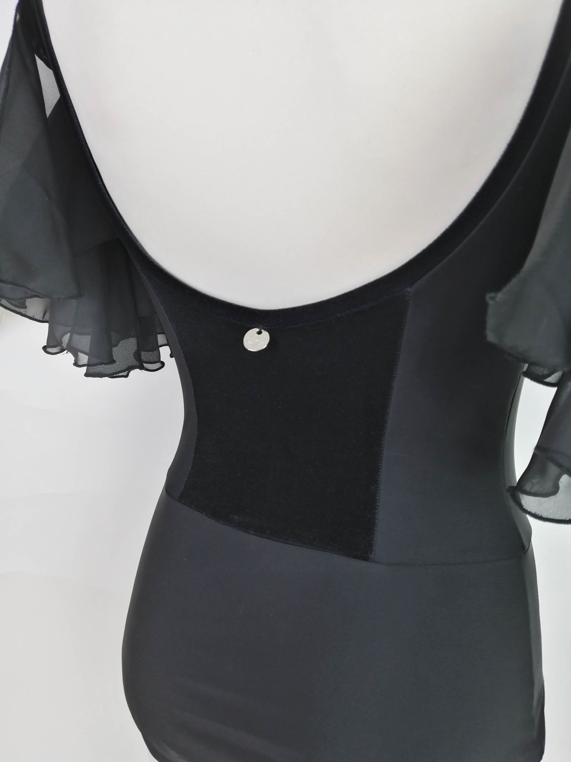 TK-BBF10ウクライナの「スヴェトラーナ・パブリッシュ」制作の」フリルの袖のデザインが超美しいベルベットづかいの黒の一点物のレオタード(9号)