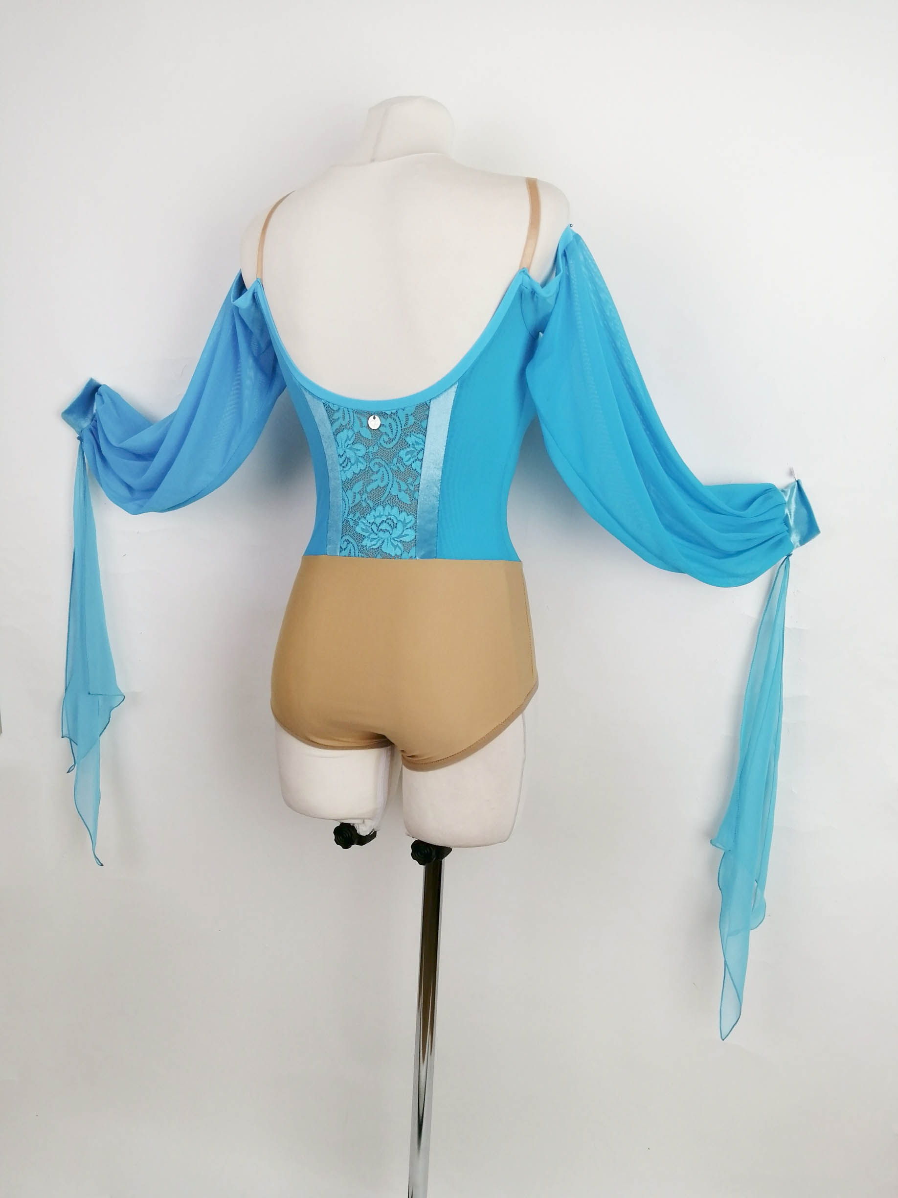 TK-BBF9ウクライナの「スヴェトラーナ・パブリッシュ」制作の」クリスアンクローバーのレースで制作された超スタイルよく見えるターコイズブルーの長袖のレオタード(9号)